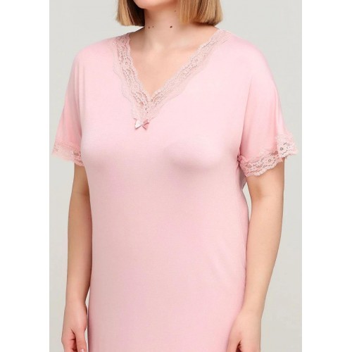 Нічна сорочка з рукавом, обробка з мережива, вільний крій. На розмір 2XL довжина виробу по спинці 104 см.
