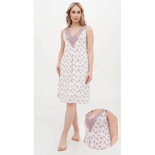 Нічна сорочка без рукава, модель середньої довжини, вставка мереживо. Квітковий принт. На розмір 2Xl довжина виробу 90 см.