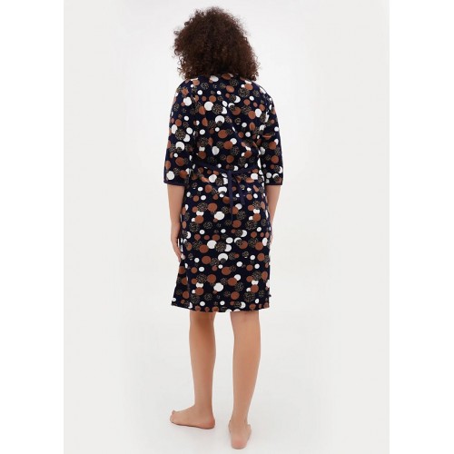 Велюровий халат на блискавці середньої довжини. Рукав 3/4, дві кишені, фіксуючий пояс. На розмір XL довжина виробу 105 см, довжина рукава 41 см.
