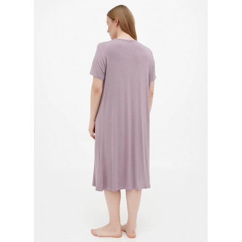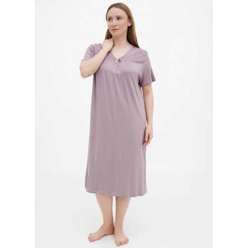 Нічна сорочка середньої довжини з коротким рукавом. Напівприлеглий крій. Прикрашена мереживом. На розмір ХL довжина виробу 112 см.