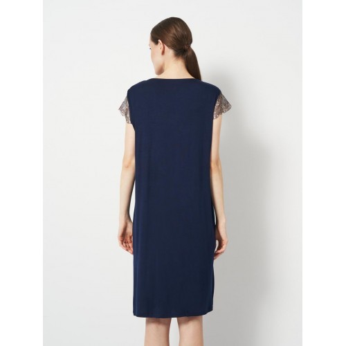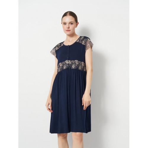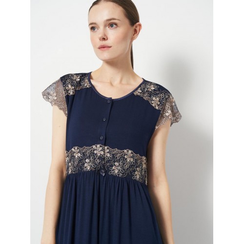 Нічна сорочка середньої довжини з мереживом, короткий рукав, верх на ґудзиках. Низ вільного крою. На розмір 2XL довжина виробу 104 см.