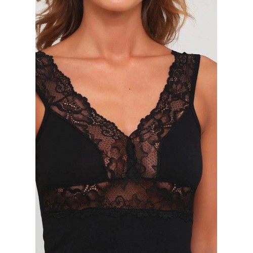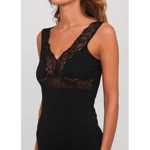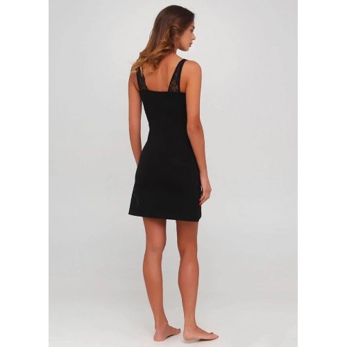 Нічна сорочка середньої довжини. Бретелі та ліф оброблені мереживом. Облягаюча модель. На розмір М довжина виробу 82 див.