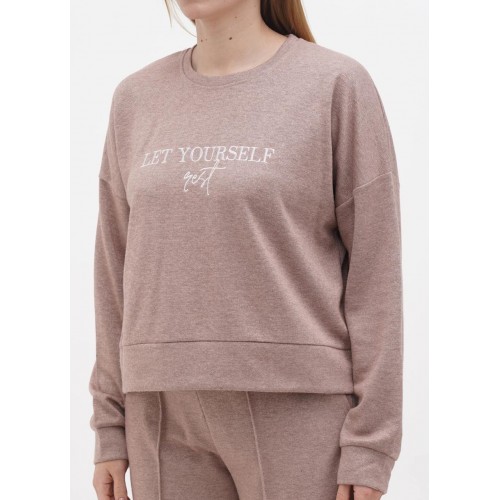 Костюм із двох одиниць. Світшот із довгим рукавом. Виріб із вишивкою. Широкі штани прямого крою із двома кишенями. Костюм прошитий ниткою люрексу. На розмір М довжина світшота 57 см, довжина рукава 47 см. Штани: довжина внутрішнього шва 74 см, ширина по низу виробу (напівобхват) 28 см.