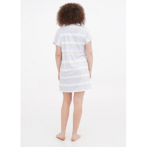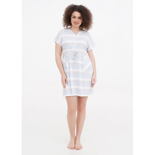 Літня сукня з двома кишенями, з коротким рукавом. Модель середньоЇ довжини, має гудзики. На розмір XL довжина виробу 92 см.